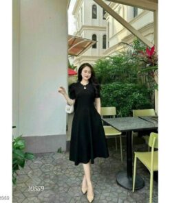 Váy dự tiệc tay ngắn dáng xoè chất liệu cotton lạnh dày dặn mềm mại che khuyết điểm tốt N57